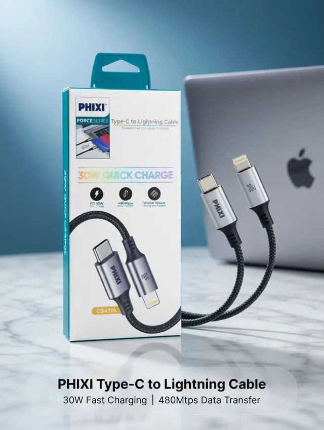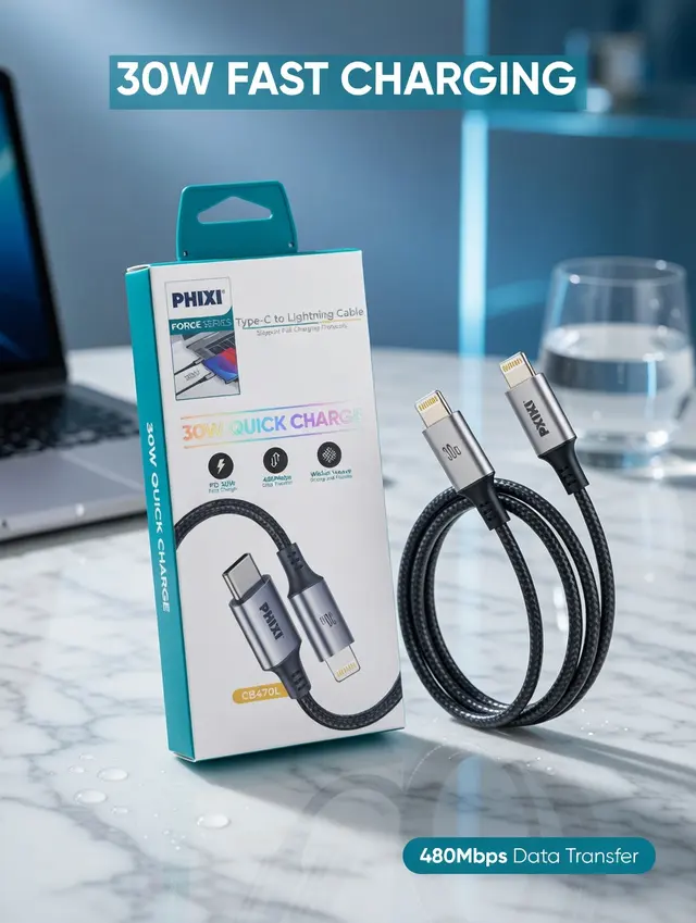 Force Serisi CB470L Type-C to Lightning hasır kablo, 30W hızlı şarj desteği ve dayanıklı metal uç tasarımıyla Apple cihazlarınız için güçlü ve güvenilir bir kullanım sunar. Hasır örgü dış yüzeyi kopma ve aşınmaya karşı ekstra dayanıklılık sağlarken hızlı şarj ve veri aktarımını aynı anda destekler. 1 metre ideal uzunluğu ile günlük kullanım için pratik ve uzun ömürlü bir çözümdür.