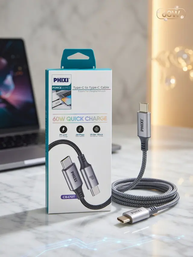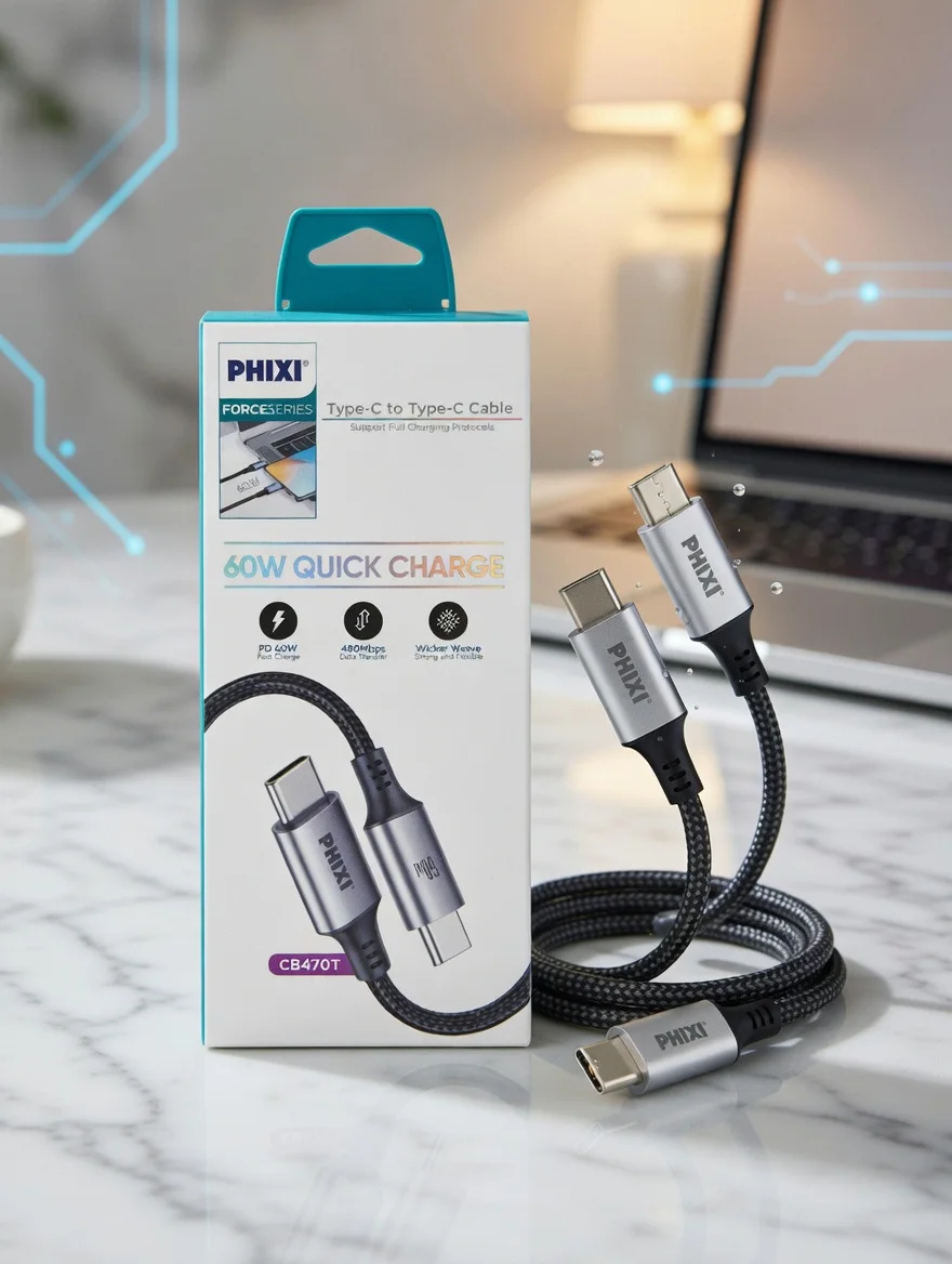 Force Serisi CB470T Type-C to Type-C hasır kablo, 60W hızlı şarj desteği ve dayanıklı metal uç tasarımıyla cihazlarınızı güvenli ve verimli şekilde şarj etmenizi sağlar. Hasır örgü dış yüzeyi kopma ve aşınmaya karşı ekstra dayanıklılık sunarken hızlı veri aktarımı desteği ile pratik kullanım sağlar. 1 metre uzunluğu ve sağlam yapısı sayesinde günlük kullanım için ideal ve uzun ömürlü bir çözümdür.