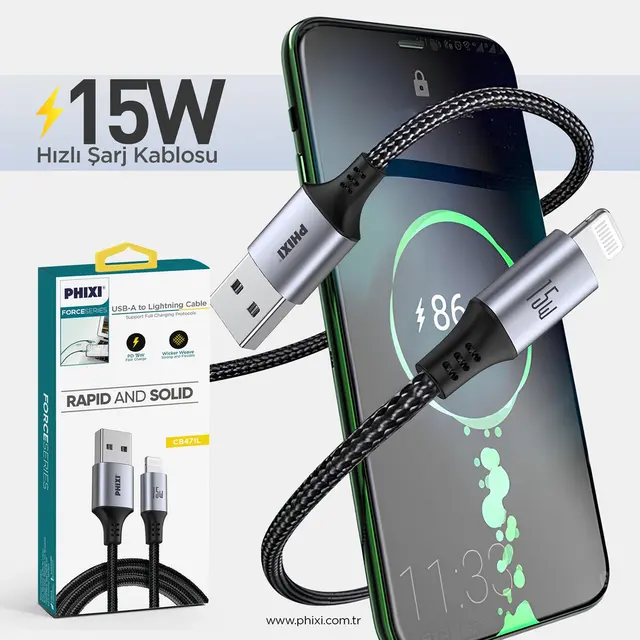 Force Serisi CB471L USB-A to Lightning hasır kablo, dayanıklı metal uç yapısı ve sağlam kablo tasarımıyla Apple cihazlarınız için güvenli şarj ve veri aktarımı sağlar. Hasır örgü dış yüzeyi kopma ve aşınmaya karşı ekstra dayanıklılık sunarken 15W hızlı şarj desteği günlük kullanım için stabil performans sağlar. 1 metre uzunluğu ve güçlü yapısıyla pratik ve uzun ömürlü bir çözümdür.