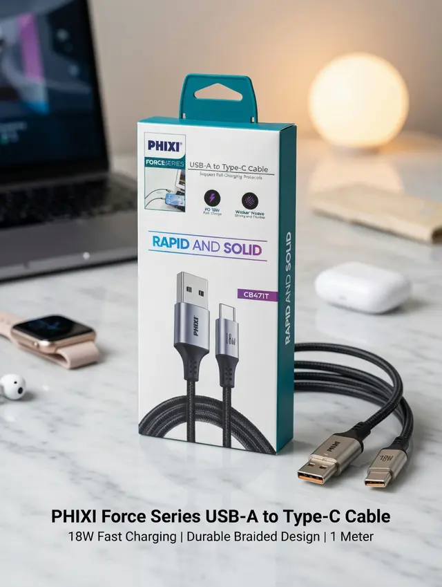 Force Serisi CB471T USB-A to Type-C hasır kablo, dayanıklı metal uç yapısı ve güçlü kablo tasarımıyla uzun ömürlü kullanım sunar. 18W hızlı şarj desteği sayesinde cihazlarınızı güvenli ve stabil şekilde şarj ederken aynı zamanda hızlı veri aktarımı imkanı sağlar. Hasır örgü dış yüzeyi kopma ve aşınmaya karşı ekstra dayanıklılık sunarak günlük kullanım için ideal bir çözümdür.